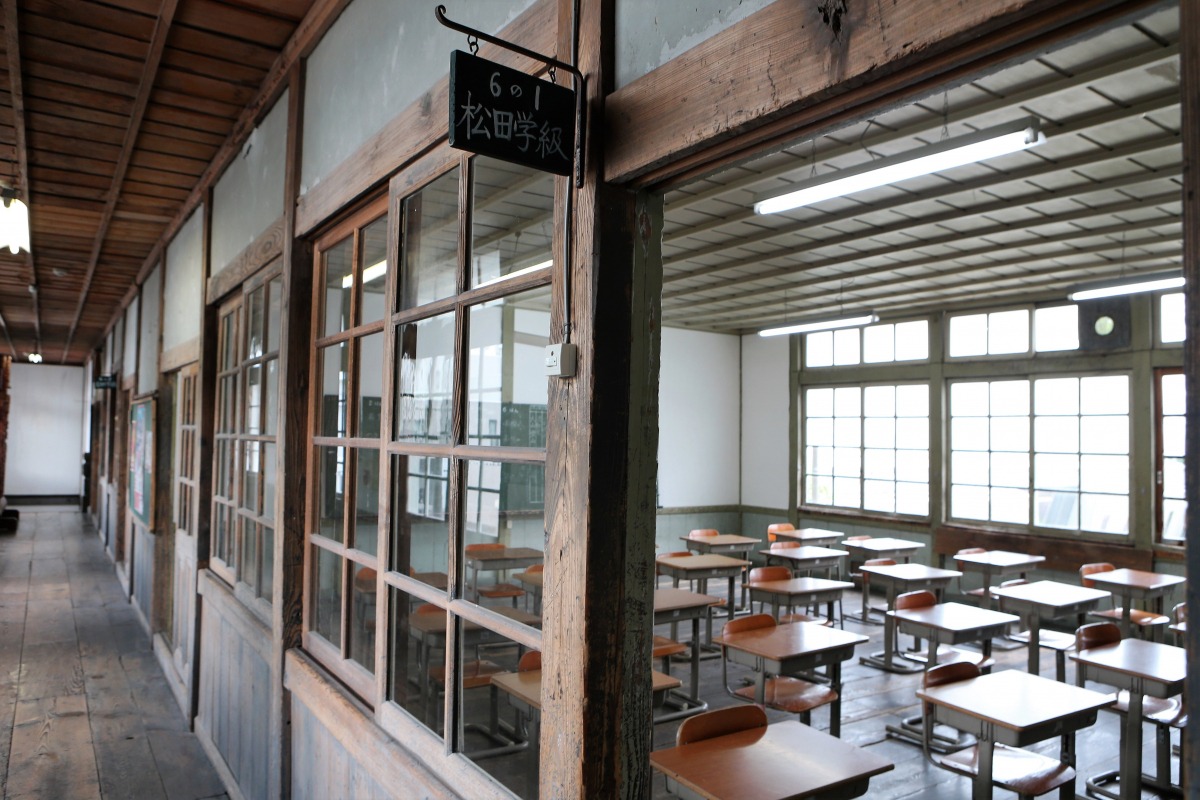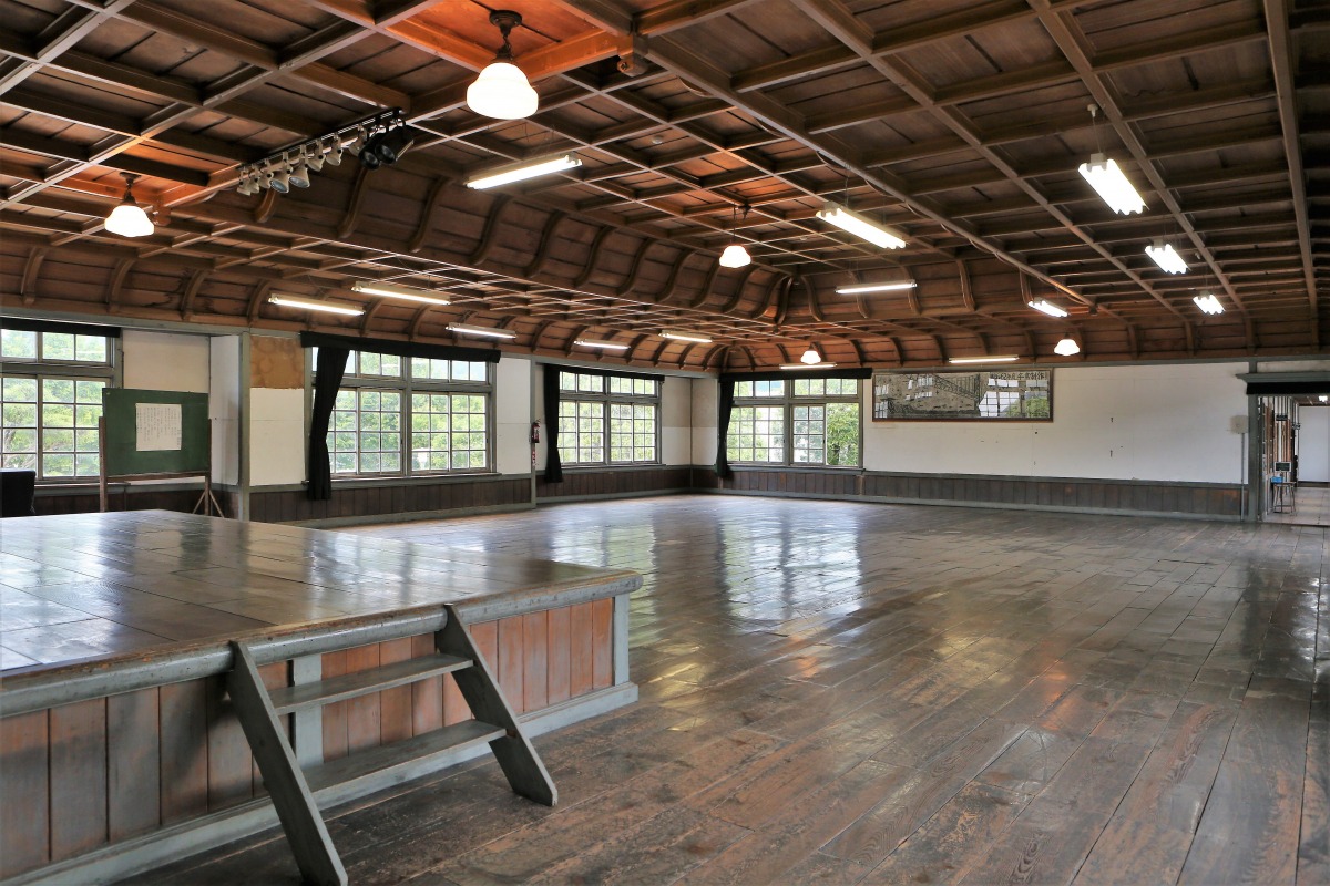 1907(明治40)年にルネッサンス様式の木造校舎として建てられた、完全なシンメトリー(左右対称)のデザインと白亜の外観が印象的な小学校です。1990(平成2)年に小学校としての役目を終え、現在は一般に公開されています。講堂の二重折り上げの洋風格(ごう)天井は風格を感じさせる設え。『ALWAYS 三丁目の夕日』『火垂るの墓』などの映画のロケ地としても使われました。また、期間限定で行われている「なつかしの学校給食」も人気です。