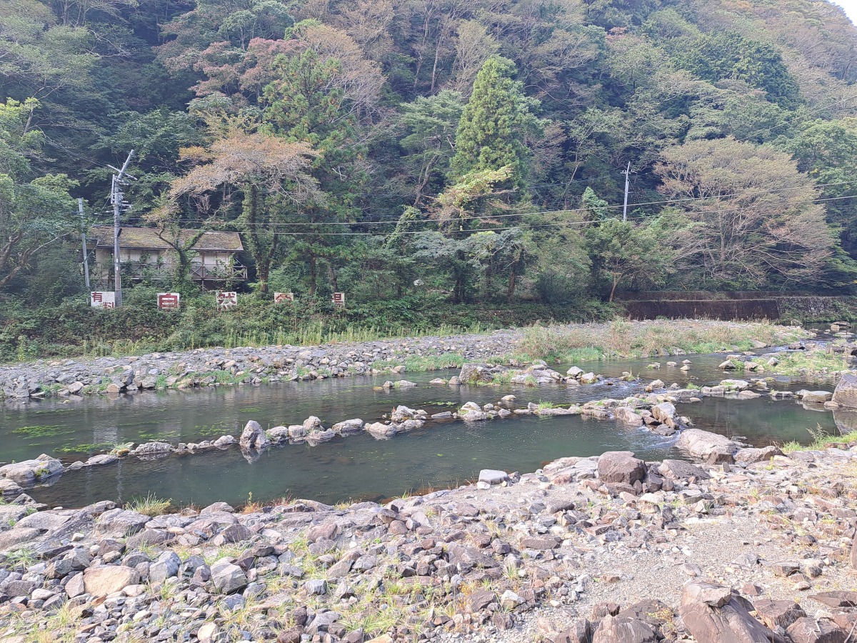 湯原温泉ダムの下に、川を使った自然釣り場があります。
