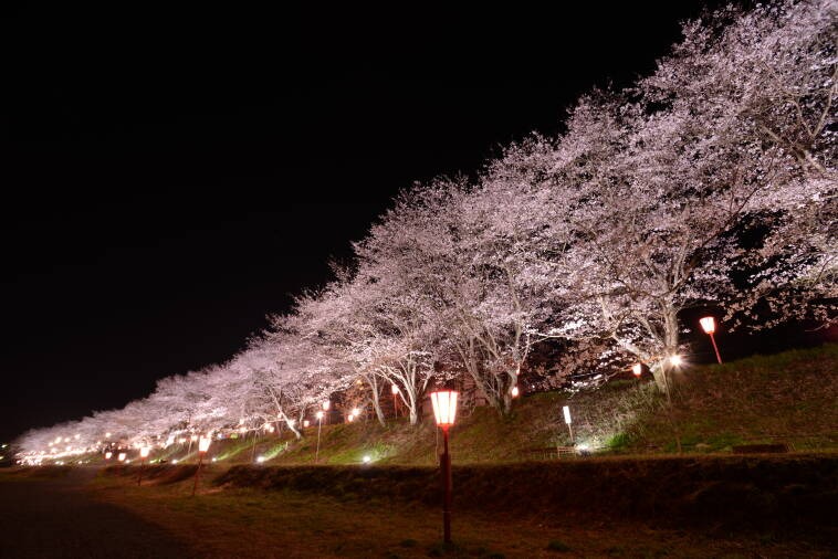 旭川堤防の約1kmに約180本のソメイヨシノが植えられています。桜が道路上を覆いトンネルとなっていることから「トンネル桜」と名付けられました。夜にはぼんぼりが灯され、夜桜も楽しめます。