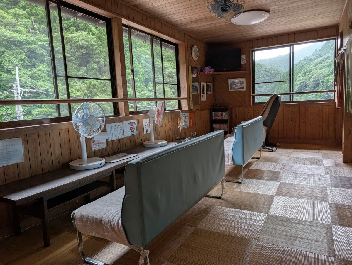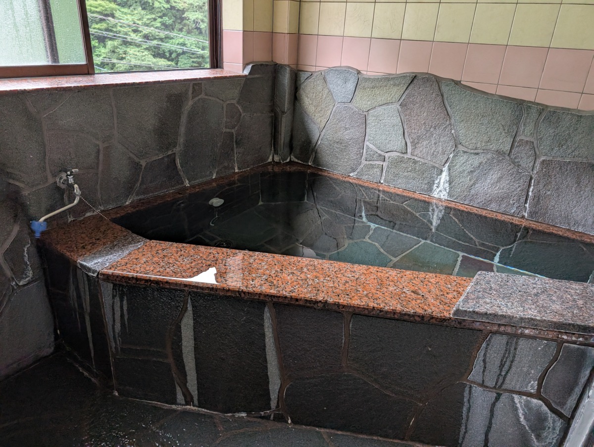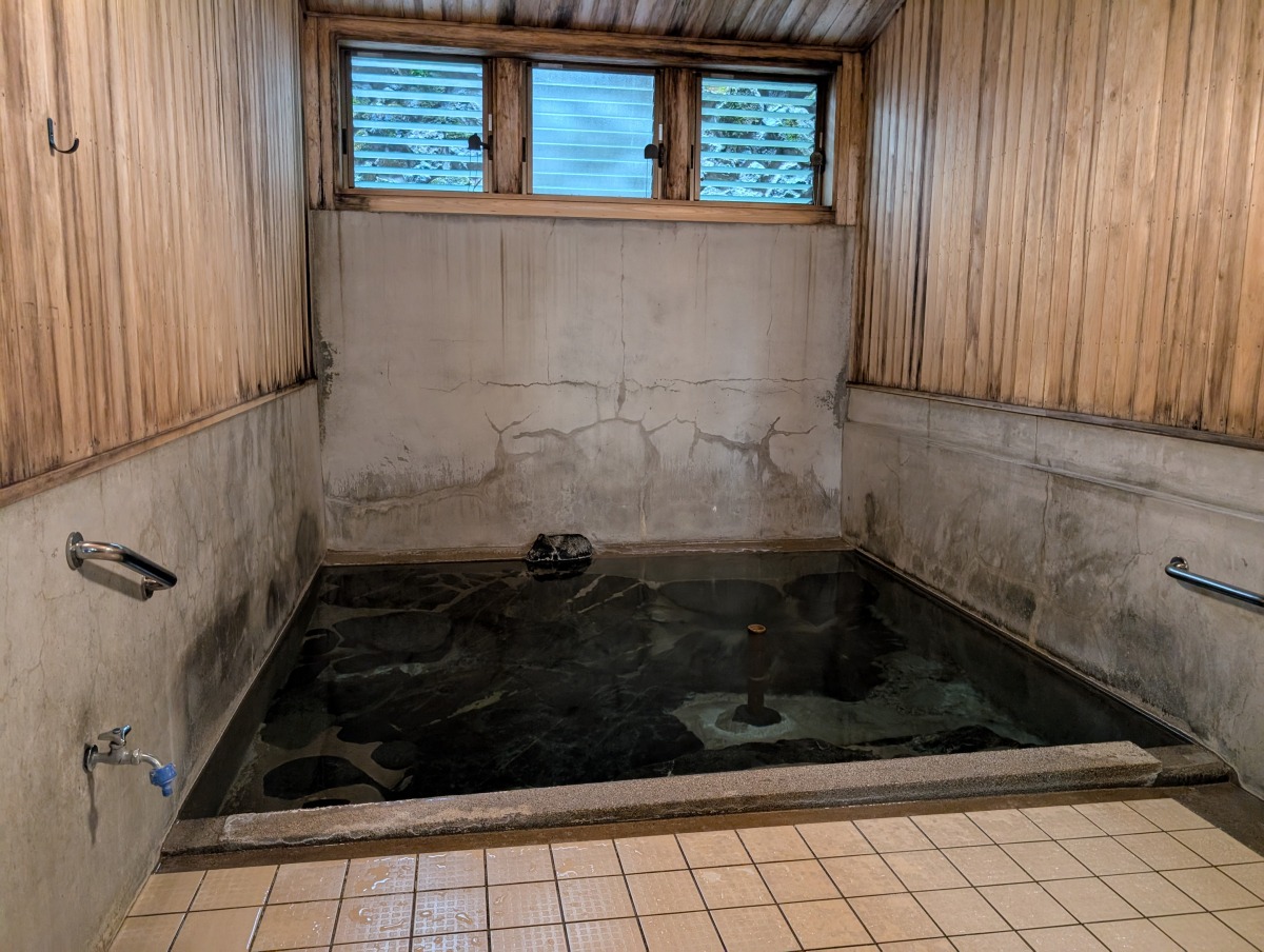 山あいの風情ある木造共同浴場。津山藩や勝山藩の殿様が入ったといわれる幕湯は室内の混浴岩風呂で、足元の岩盤から竹筒を通して温泉が涌き出ています。幕湯の他にも普通湯(男女別)と貸切風呂が3か所あります。