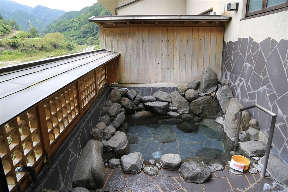 温泉名は元亀年間(1570~1572年)、戦いで負傷した武士たちを癒すため、樽詰めにしたお湯を送ったという故事に由来。目の前の旭川の川床に泉源があり、切り傷や皮膚病に効能があるといわれています。