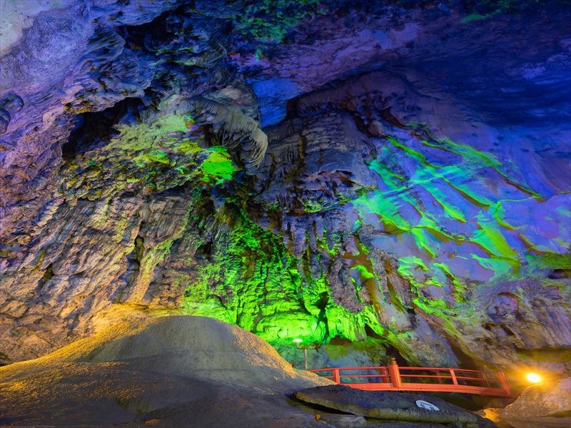平安時代に書かれた『日本三大実録』に記された、文献に残る日本最古の鍾乳洞として知られる鍾乳洞です。全長約800mのうち、現在は約300mが観光洞として公開されています。日本一とも言われる22階層の鍾乳石からなる「五重の塔」や、高さ3m、直径5mの大石筍「洞内富士」などのダイナミックな景観に圧倒されます。洞内は一年を通して気温が9度と夏は涼しく冬は暖かいスポットです。