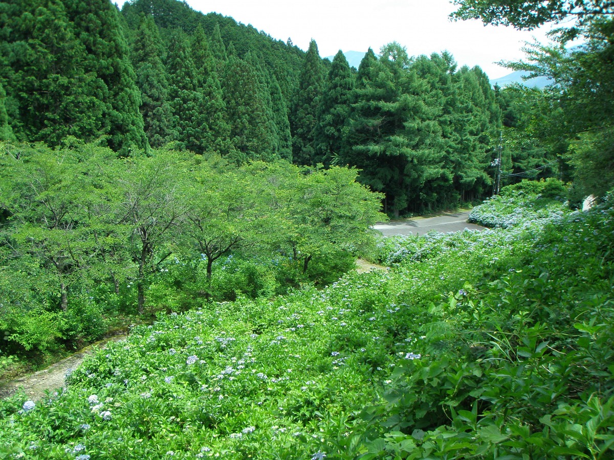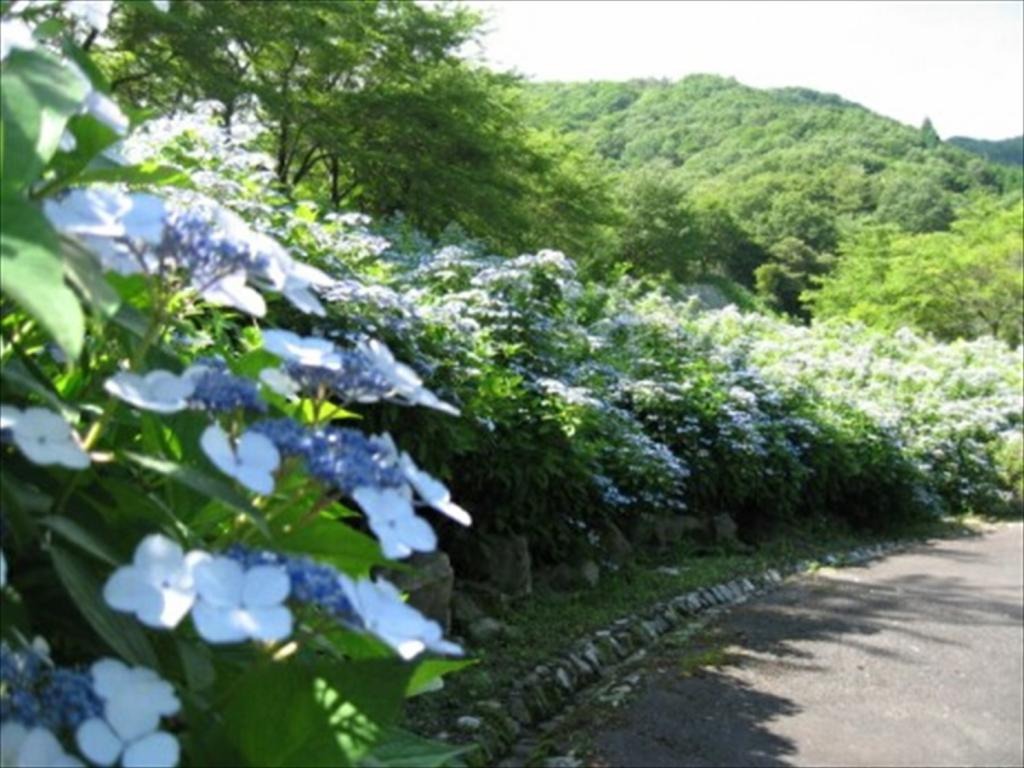 紫陽花(アジサイ):6月中旬~7月(約2,000株(額紫陽花(ガクアジサイ))