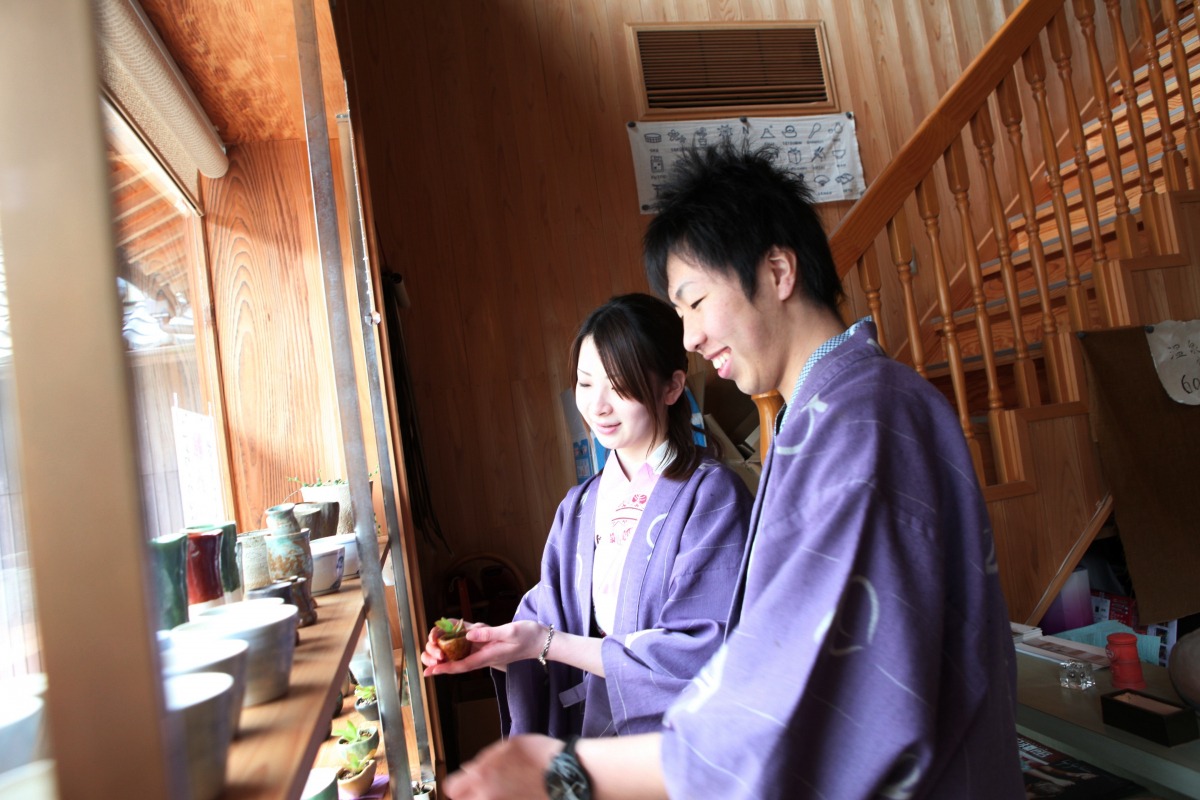 「美人の湯」と呼ばれる湯郷温泉の温泉街にある陶芸スポット。手ひねりや、電動ろくろで、備前土や信楽白土の陶芸体験が気軽に楽しめます。丁寧に教えてくれるので初めてでも安心です。湯呑み、茶碗、おそろいの夫婦茶碗や小鉢、小皿、箸おきなど自分の好きな作品が作れます。