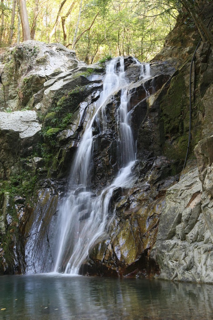 滝の宮とも称される「天石門別(あまのいわとわけ)神社」の神域にあります。滝は大小二つからなり、上の方の大きい滝を雄滝、下の方を雌滝といいます。滝壷下流は“琴弾の瀬”と呼ばれて、そこから滝名が付けられました。夏は天然の涼場となり、秋は紅葉の美しいことで知られています。