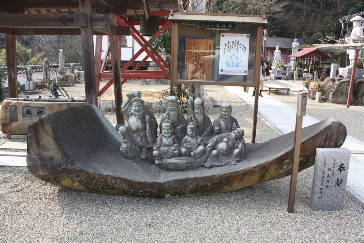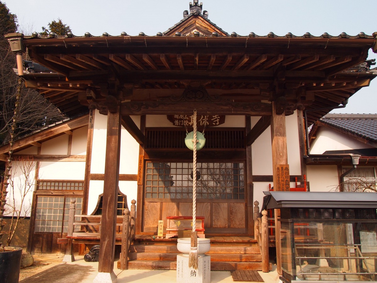 真休寺はもともと、大山普門院と称して大山にあり、隆永上人代、約320年前、明暦年間に住坊が造営され、岡尾山普門院真休寺と称されたといわれています。本尊の彫刻は慈覚大師にして、格式極めて高く、昭和49年に庫裏、本堂の再建されました。春は桜並木が迎えてくれ、境内には、ぼけ封じ水子供養塔や地蔵のほか、七福神などがあります。
