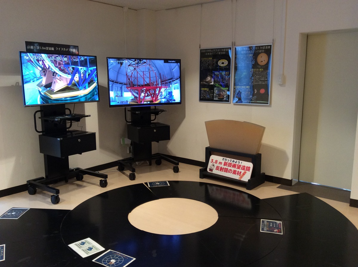隣接地には、アジア最大級の3.8m新技術望遠鏡を備えた京都大学岡山天文台や日本最大級の口径188cmを誇る反射望遠鏡を備えた国立天文台岡山天体物理観測所があり、展望デッキ等から雄姿を望むことができます。