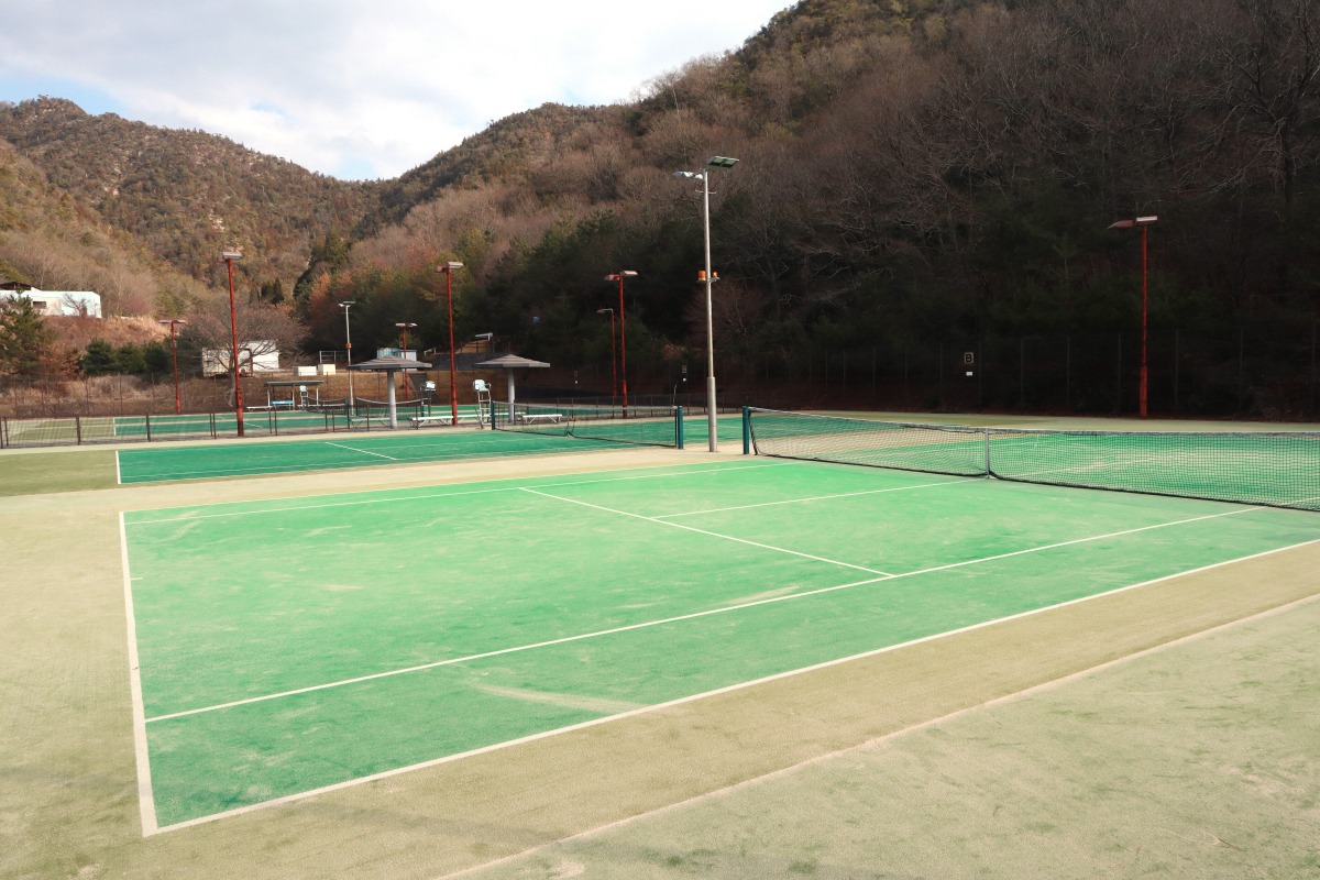 レストランやカフェ、多目的ホール、屋内温水プール、屋外テニス場などの施設も充実。宿泊もできます。