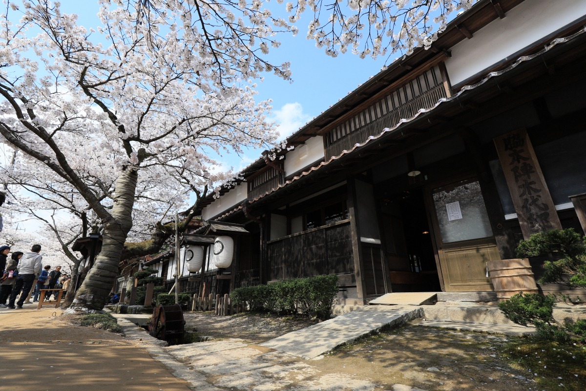 脇本陣・木代邸は出雲往来の宿場として栄えた新庄宿で脇本陣をつとめた家です。屋号は「向馬場屋」と称し、江戸時代の終わり頃に建てられた幕末を代表する建物で、三列六間取りの大規模家屋です。新庄村指定の文化財で、一般開放しています。奥には醤油倉を改装したお食事処「さくら茶屋」があります。