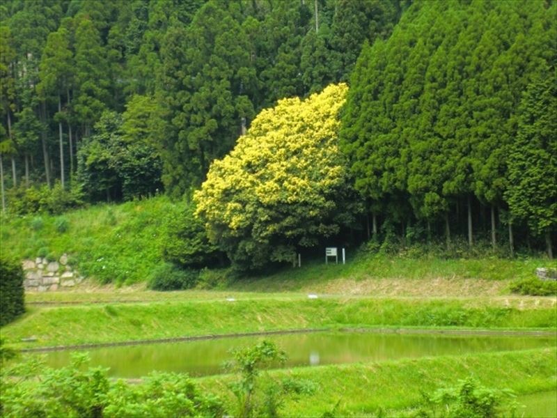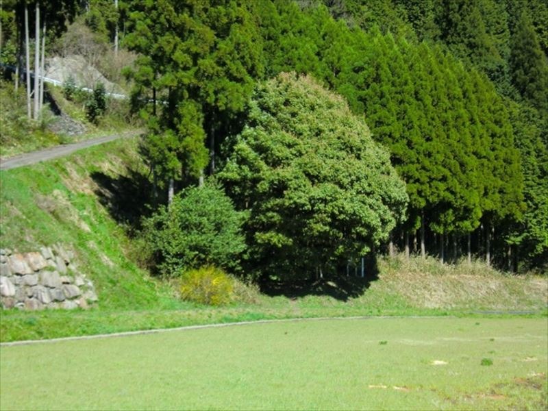 推定樹齢200年のウラジロガシで、4月の赤に始まり、5月には橙、6月初めの黄から終わりごろには黄緑に変わり、夏には緑、秋には濃緑、冬は緑黄斑と変化を見せます。一年をかけて葉の色が変わります。