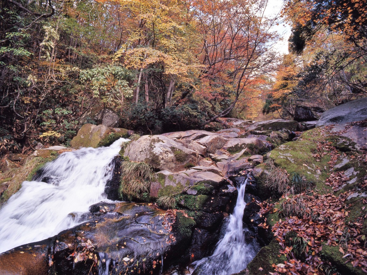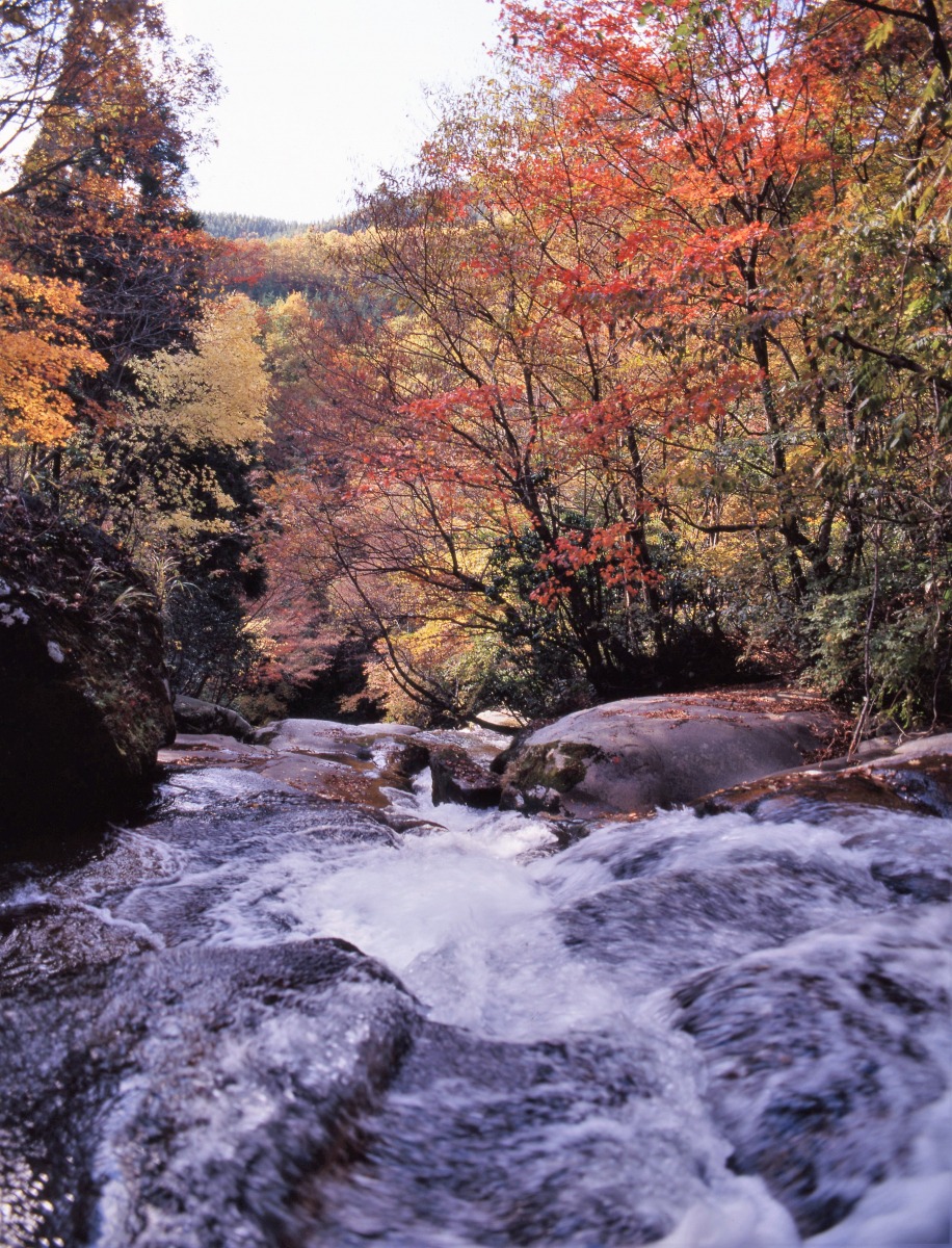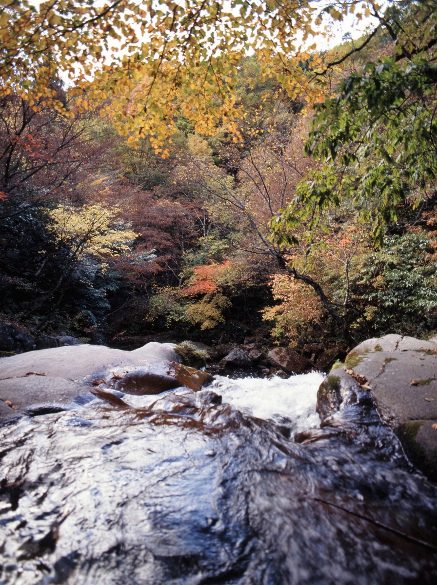 急傾斜を流れる羽出川に沿い約2kmに渡って続く渓谷。幅は広くなく、地形から小さな滝が数十箇所以上あり、マイナスイオンを存分に感じることができる。中でも、「唐音の滝」と「二軒屋の滝」は見応えがあり、辺りの紅葉樹とのバランスが良く美しい。