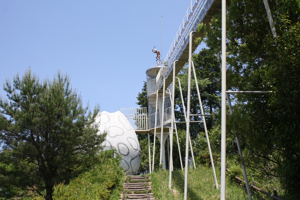 地球誕生からの歴史をテーマに作られた公園で、小さな子ども連れのファミリー層にも人気のスポットです。2体の大きな恐竜の模型、そして恐竜の卵から出発する約80mの長さのローラー滑り台があります。
