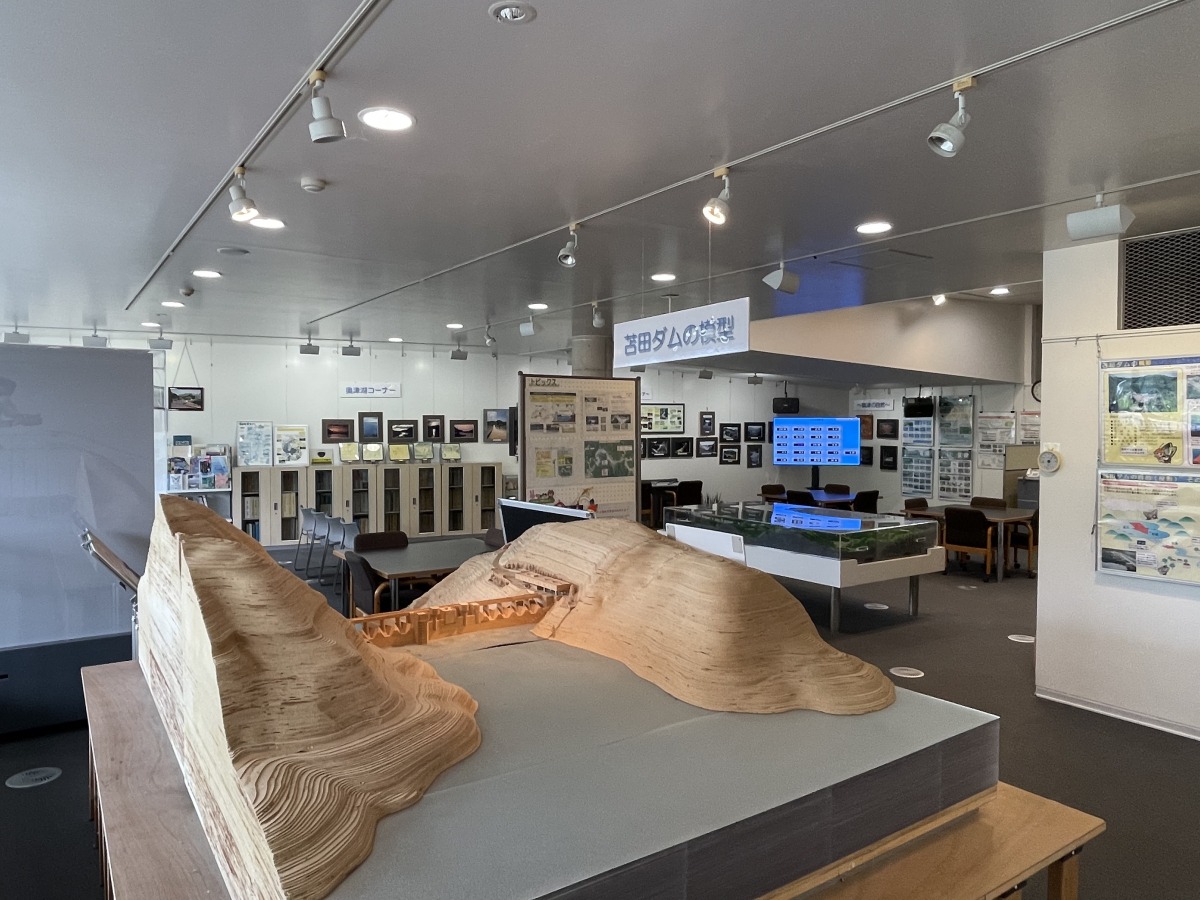 ダム内には堤内見学室があり、見学室の窓から眺めると眼前に圧倒的な水の景観を見ることができます。