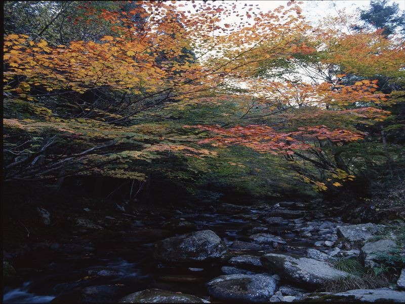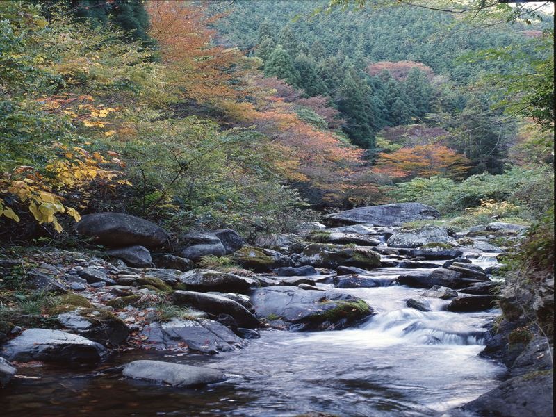 村の中北部に位置する約5kmという県下有数の規模を誇る渓谷です。遊歩道も設置された手軽なハイキングコースとなっており、渓流釣りもできます。奇岩と清流の合間に咲くヤマザクラやシャクナゲ、ヤマアジサイ、ブナをはじめ、珍しい植物を見ることができます。
