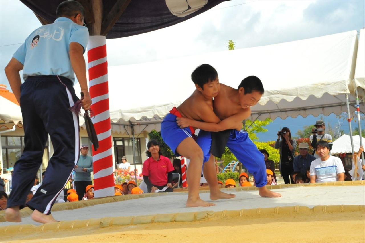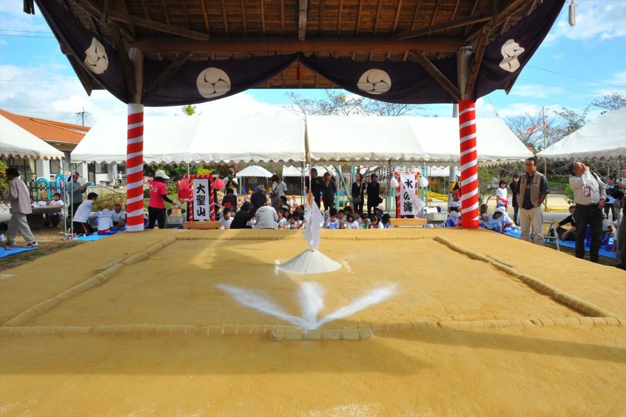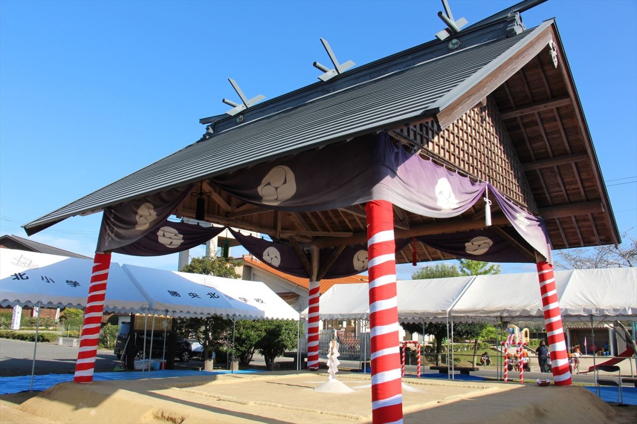 土俵が四角いため、角土俵と呼ばれています。国内に現存し、使用されている唯一のものとされ、「角力」と書いて「すもう」と読みます。毎年隣接する小学校の小学生により、角力大会が奉納されています。