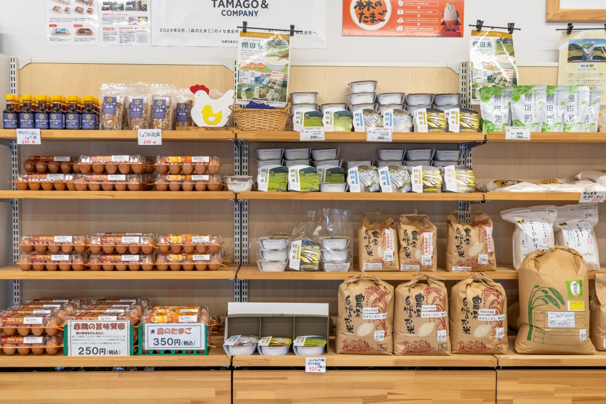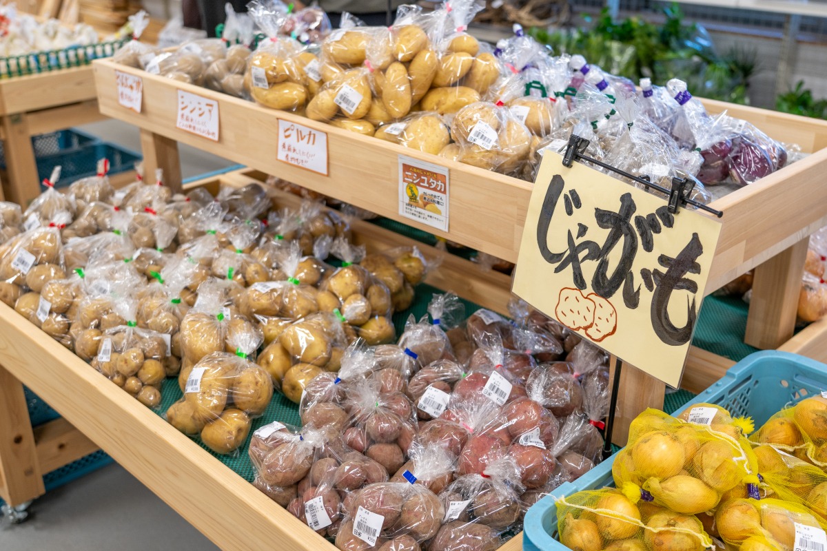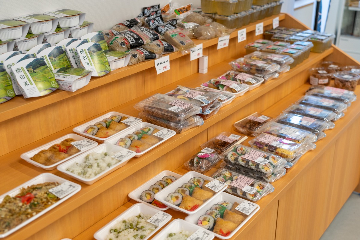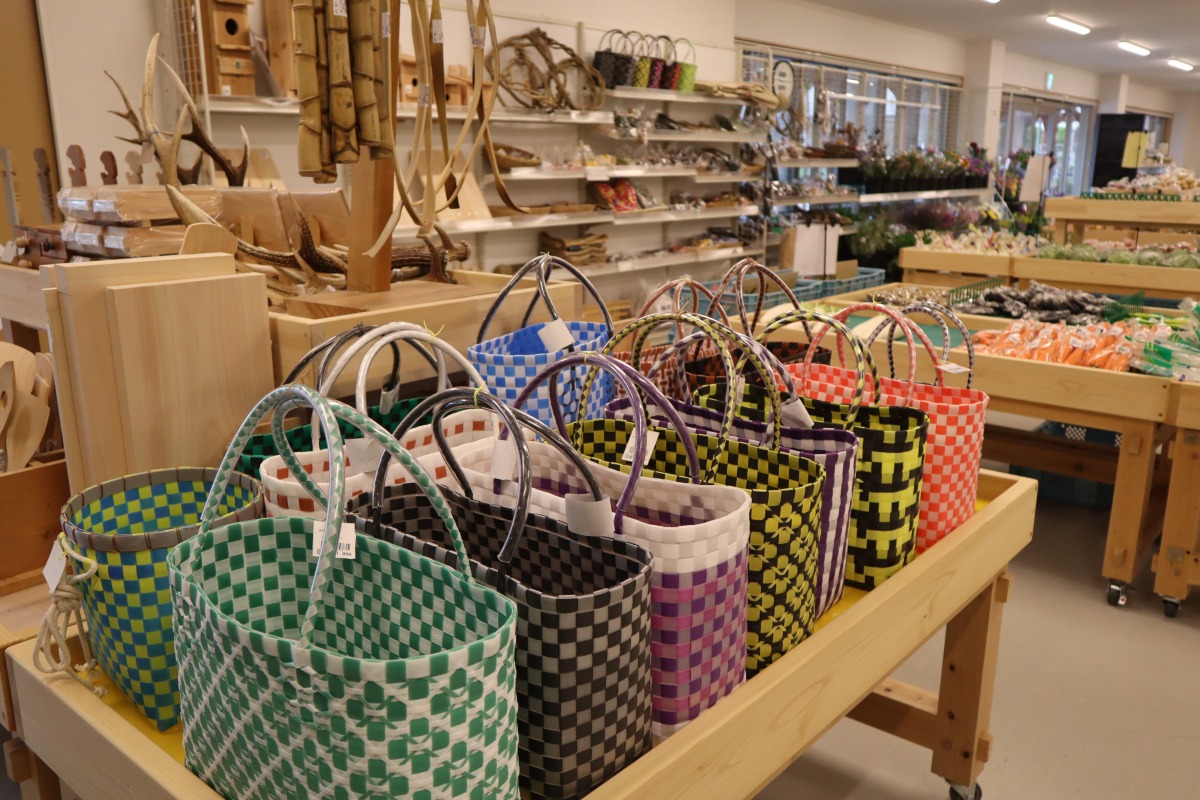 2024年5月、移転リニューアルオープン。地元の生産者から直接届く新鮮な旬の野菜やくだもの、花木、米、和洋菓子などが揃う直売所です。手作りのお弁当や総菜も種類豊富で、巻きずしやばら寿司、サバ寿司など固定ファンの多い人気商品も多数。地元の人たちが手掛ける木工品や手芸品のほか、フラワーアレンジメントの素材も取り扱っています。