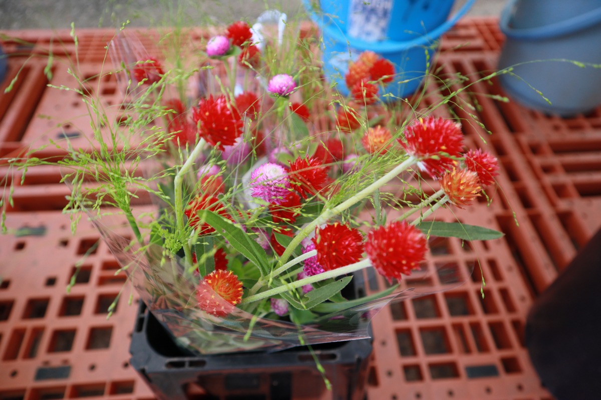 季節の花やおいしいものが豊富に並ぶ