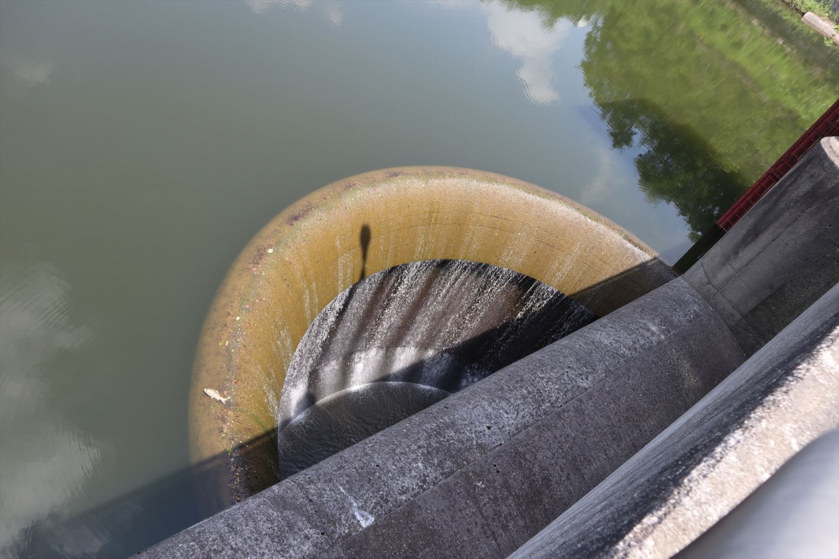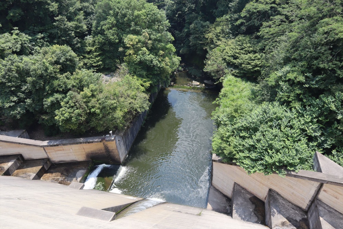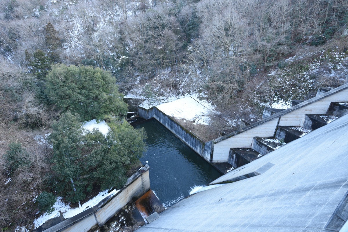 鳴滝ダムの貯水池周辺に広がる田園への影響を最小限にするため、満水位を低くする必要があり、常用洪水吐は初期の放流量が大きい半円越流堤を採用。