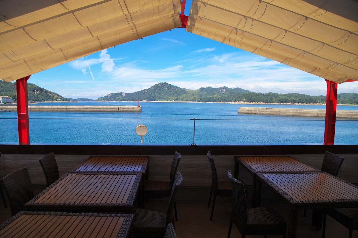 JR笠岡駅から伏越港まで徒歩約15分、フェリー約50分「豊浦港」下船すぐ