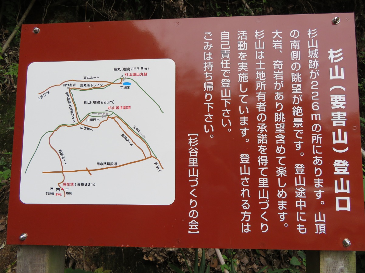 - 山陽自動車道鴨方ICから約5分、軍神社(杉山登山口)まで徒歩約10分
