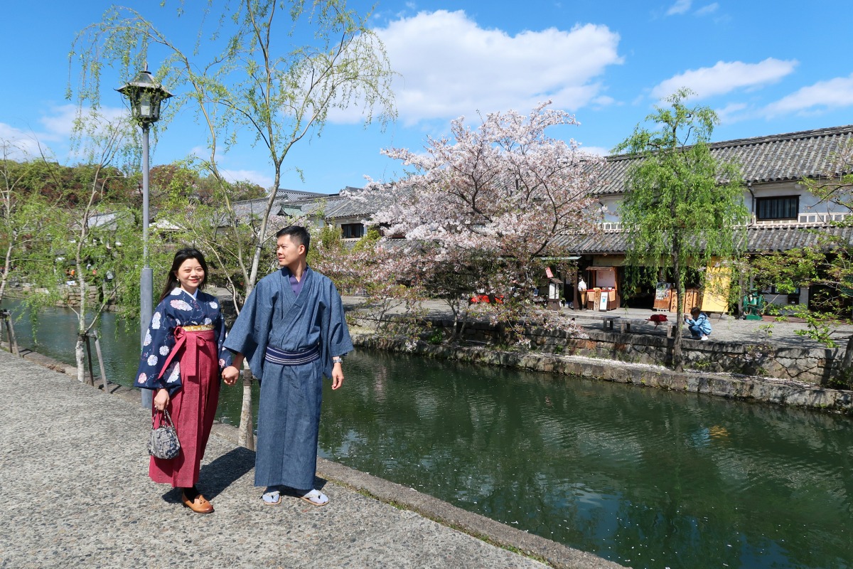 倉敷市の観光名所「倉敷美観地区」。せっかくなら更に気分を高めるアイテムとして、和装がお勧め!旅の思い出に記念撮影も◎