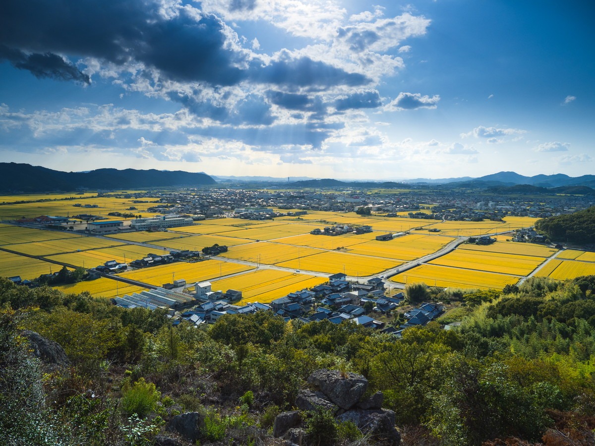 邑久町(おくちょう)のシンボルともいえる、千町平野(せんちょうへいや)では瀬戸内の温暖な気候や県都岡山市近郊という恵まれた条件のもと米とビール麦などを栽培しており、春夏秋冬で異なる表情を見せてくれる。標高約135mの高砂山の7合目付近にある展望台までの道のりには、桜や紅葉が植栽されており、気軽なドライブにオススメ。(細い道が続くため、徐行・安全運転でお進みください)