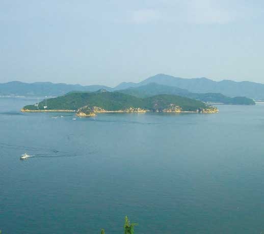 古墳や石島八十八石仏などの歴史的遺産を有した離島。島の北側は岡山県玉野市、南側は香川県直島町で、島内に香川県との県境があるめずらしい島です。石島山山頂から見渡す瀬戸内海の多島美は絶景。海苔の養殖が盛んです。